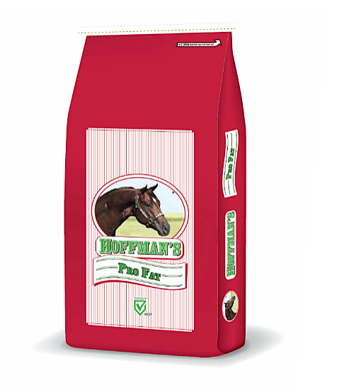 Hoffman’s 16% ProFat Horse Ration is a part of the Hoffman’s line of equine feeds. This feed is intended to be fed at 0.4 – 1.5 kg per head daily, in at least 2 equal, separated feedings. Good quality hay should be fed at 1.5 – 2.5 kg per 100 kg of body weight. This ration is intended for horses needing more body condition. This ration is also well suited for senior horses that need extra energy to maintain weight. The actual feeding level will be determined by the quality of the forage, level and intensity of the work, and the condition of the horse. This feed is intended for horses over 1 year of age. Always allow free choice access to clean water, salt and Hoffman’s Horse Mineral.