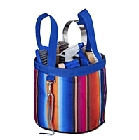This tote is the perfect size for storing all your daily grooming tools for your horse. The four inside pouches keep brushes and spray bottles upright and organized. Complete with an exterior spring snap for hoof pick or keys and strong nylon carry straps.