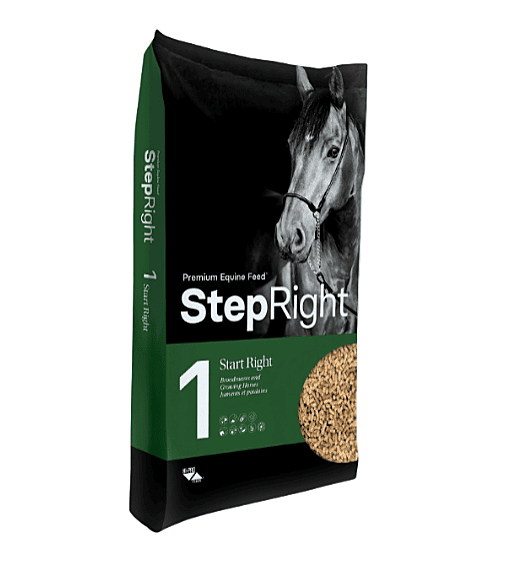 Step 1 Start Right is a soy-free pelleted feed designed specifically for lactating broodmares, foals and weanlings.