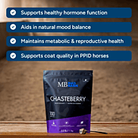 Chasteberry powder is a natural herbal supplement that supports normal hormone production and pituitary function in horses. Chasteberry is popular for supporting moody mares, senior horses and those with Equine Cushing’s Disease (PPID).