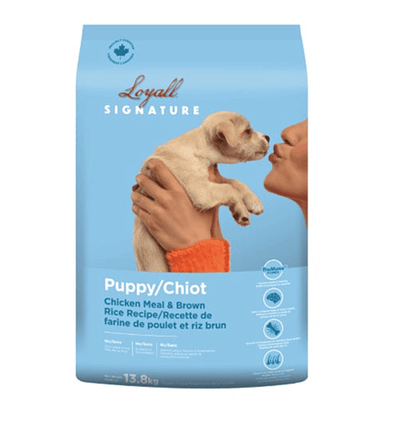 Your healthy puppy can play more bringing joy and making the most remarkable memories with you that will last a lifetime. Loyall® Signature Puppy Chicken & Brown Rice Recipe features chicken protein as the #1 ingredient for a high-quality protein diet along with a variety of fruits and vegetables. As a wholesome option, it’s always free of corn, wheat, soy, and by-products for high-quality nutrition for puppies. Added DHA helps support brain and vision health, while calcium and phosphorus support healthy bone development. It’s always free of corn, wheat, soy, and by-products. With guaranteed levels of Omega 6 and Omega 3 fatty acids, it supports coat and skin health. Our patented Opti-Cook® process and added prebiotics help support digestive health. You can always count on every bag of Loyall® Signature providing Trumune® power to support immune health and mobility.