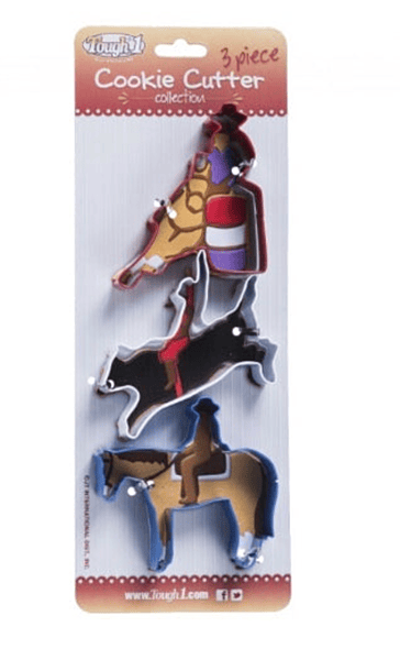 Farm and horse themed cookie cutter shapes create fun cookies for celebrations and gifts! Metal cookie cutters are powder coated in bright colors to prevent rusting.